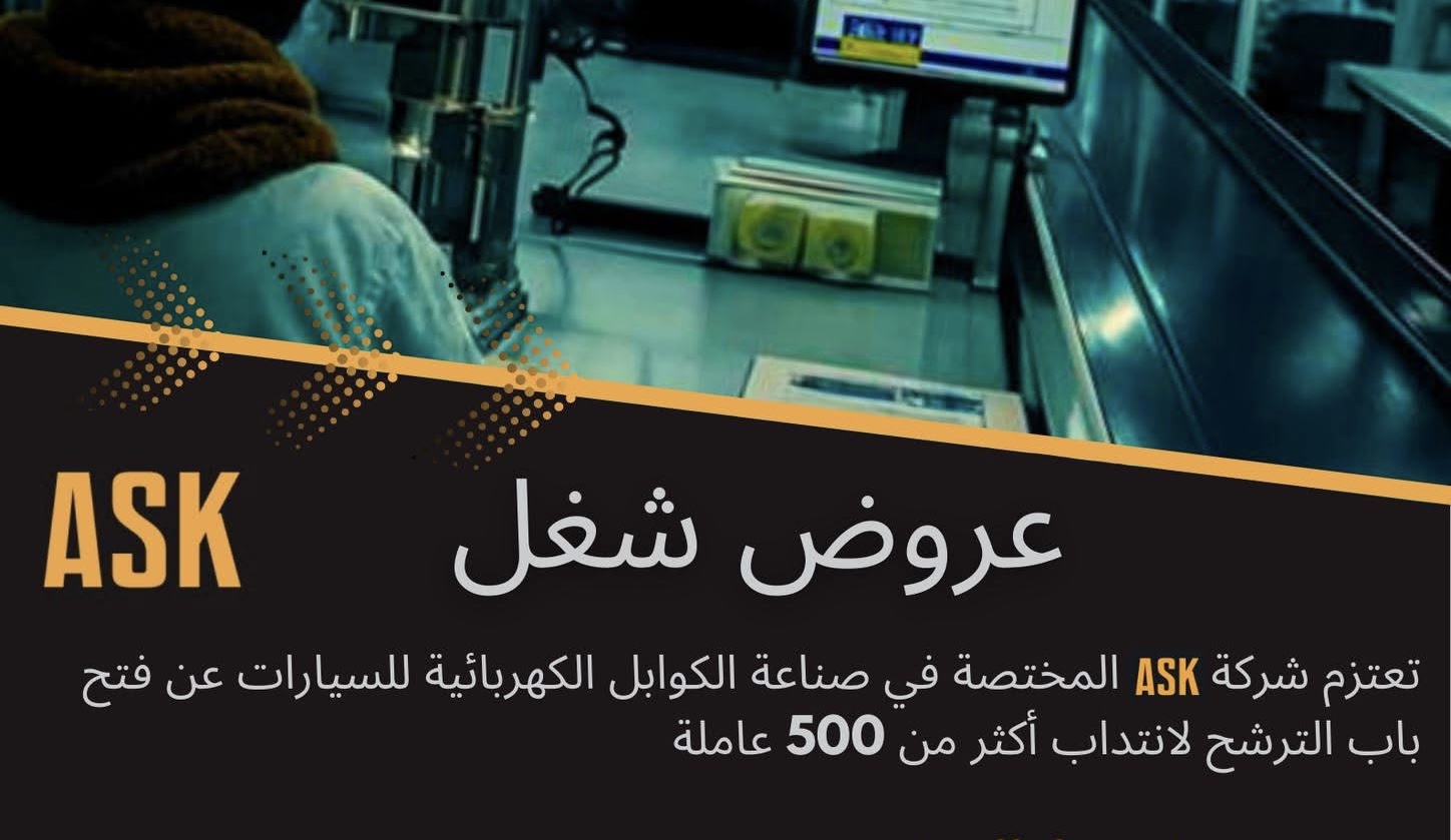 شركة ASK المختصة في صناعة الكوابل الكهربائية للسيارات تنتدب 500 عاملة مستوى سابعة أساسي فمافوق