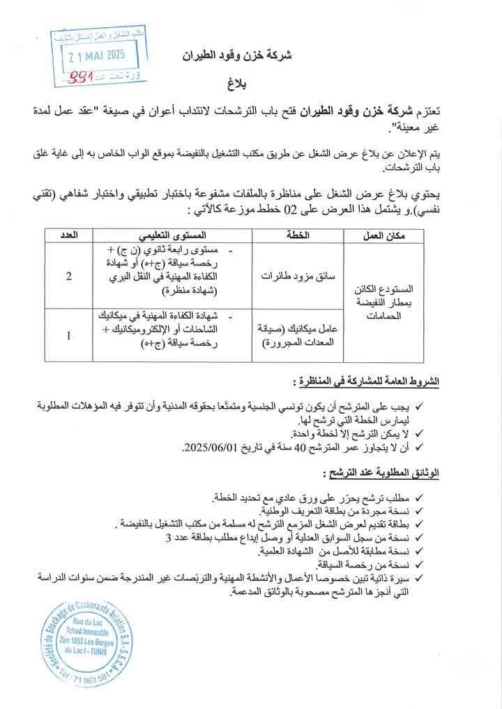 انتداب أعوان بمطار النفيضة الحمامات الدولي : آخر أجل 04 جوان 2025