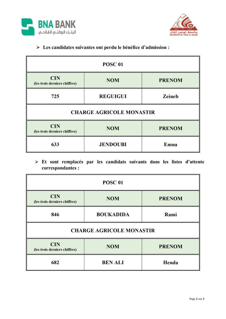 La Banque Nationale Agricole déclare admissibles les candidats du Groupe 02 les noms sont mentionnés ci-dessous par ordre de mérite.