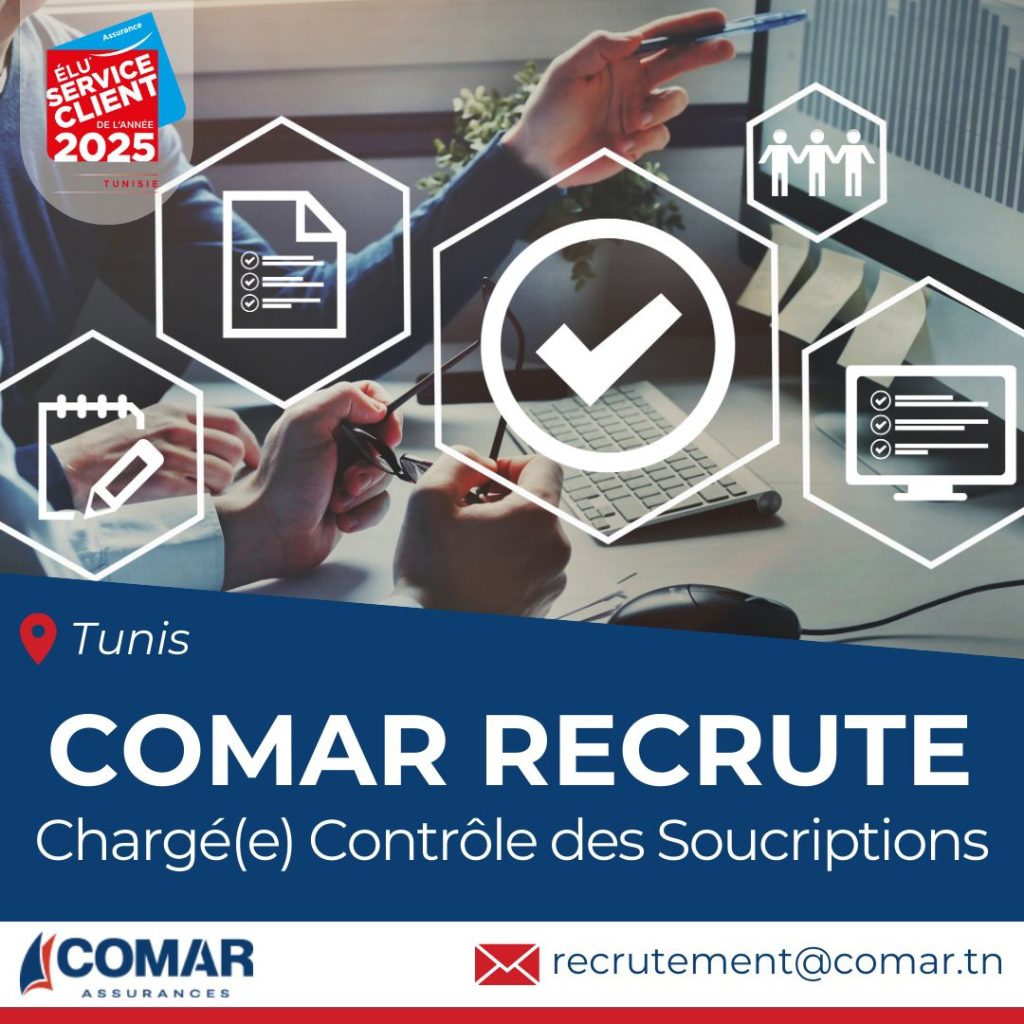 📢 La Compagnie Méditerranéenne d’Assurances et de Réassurances CO.M.A.R, Recrute : Un(e) Chargé(e) Contrôle des Souscriptions