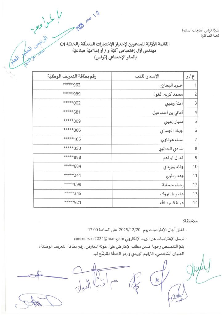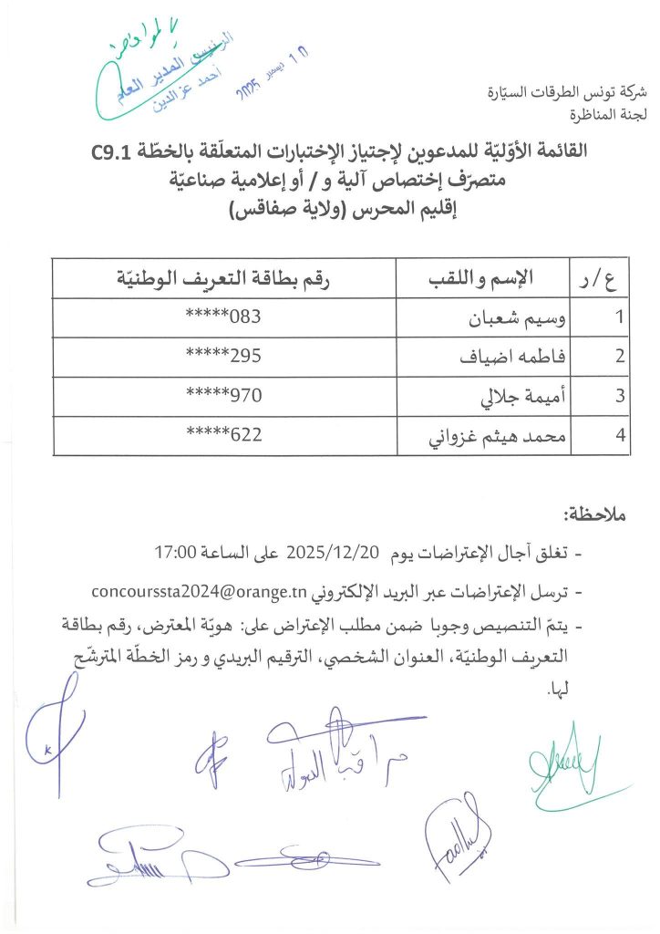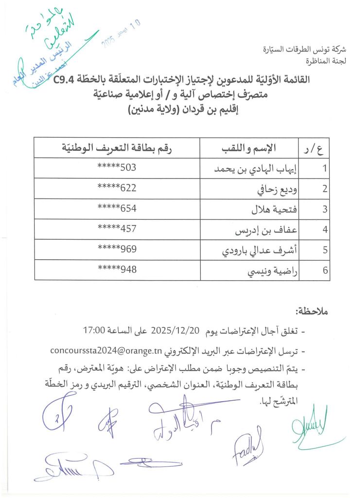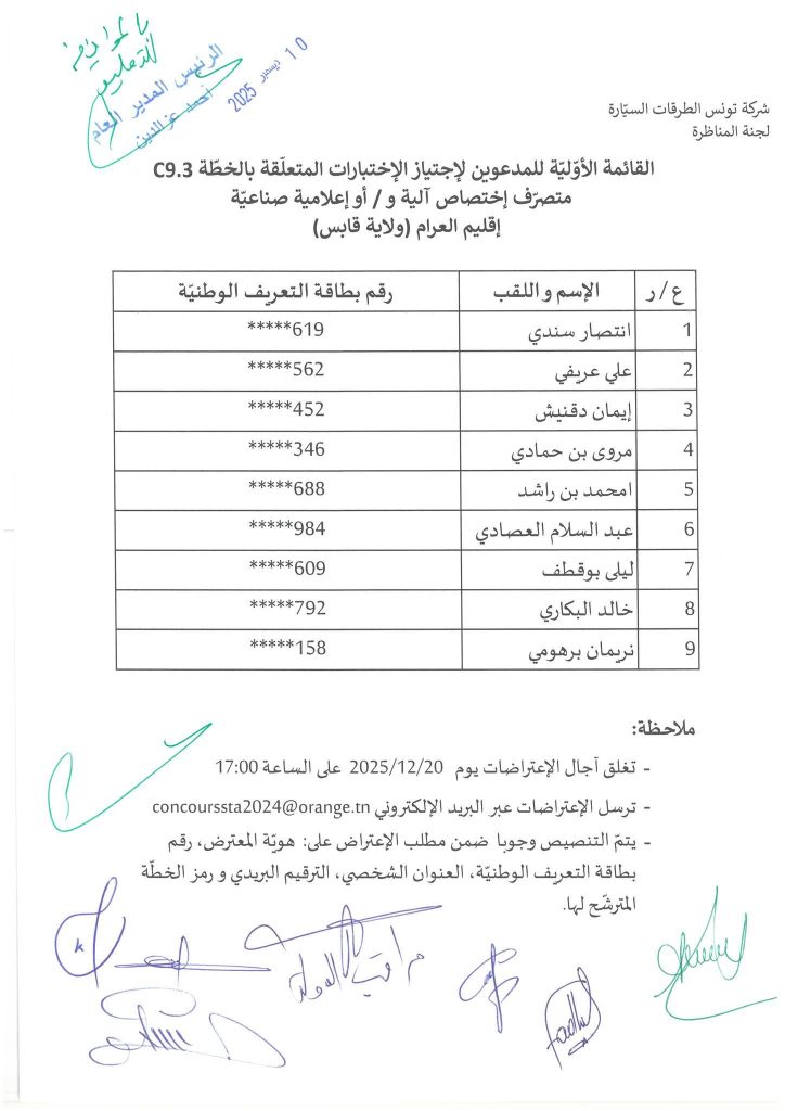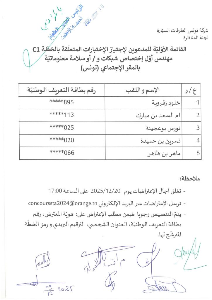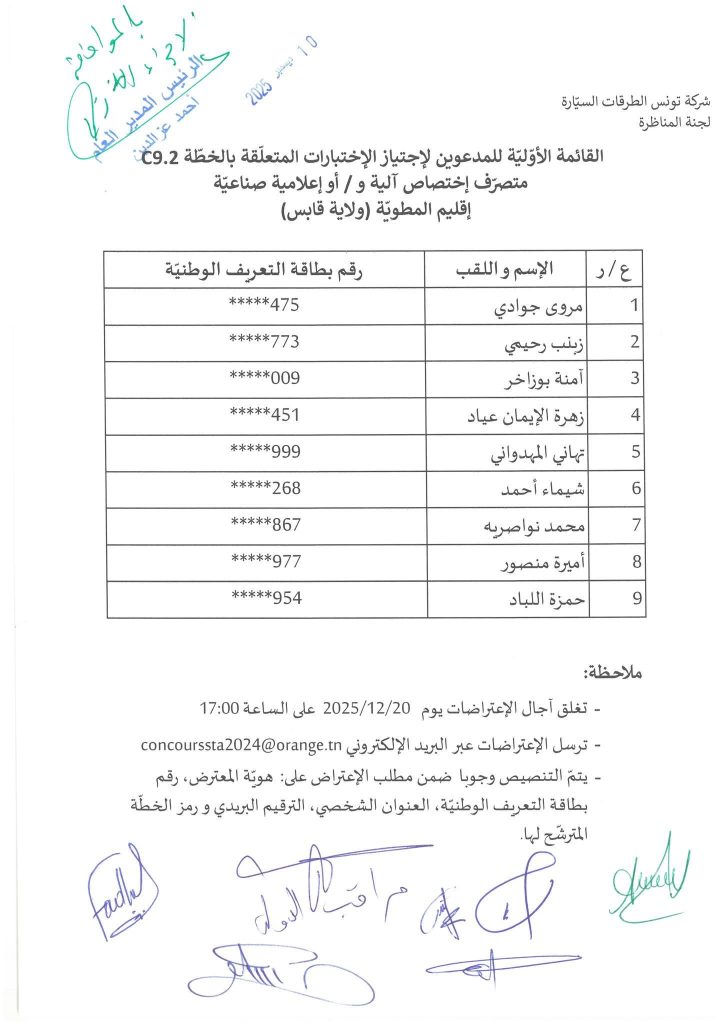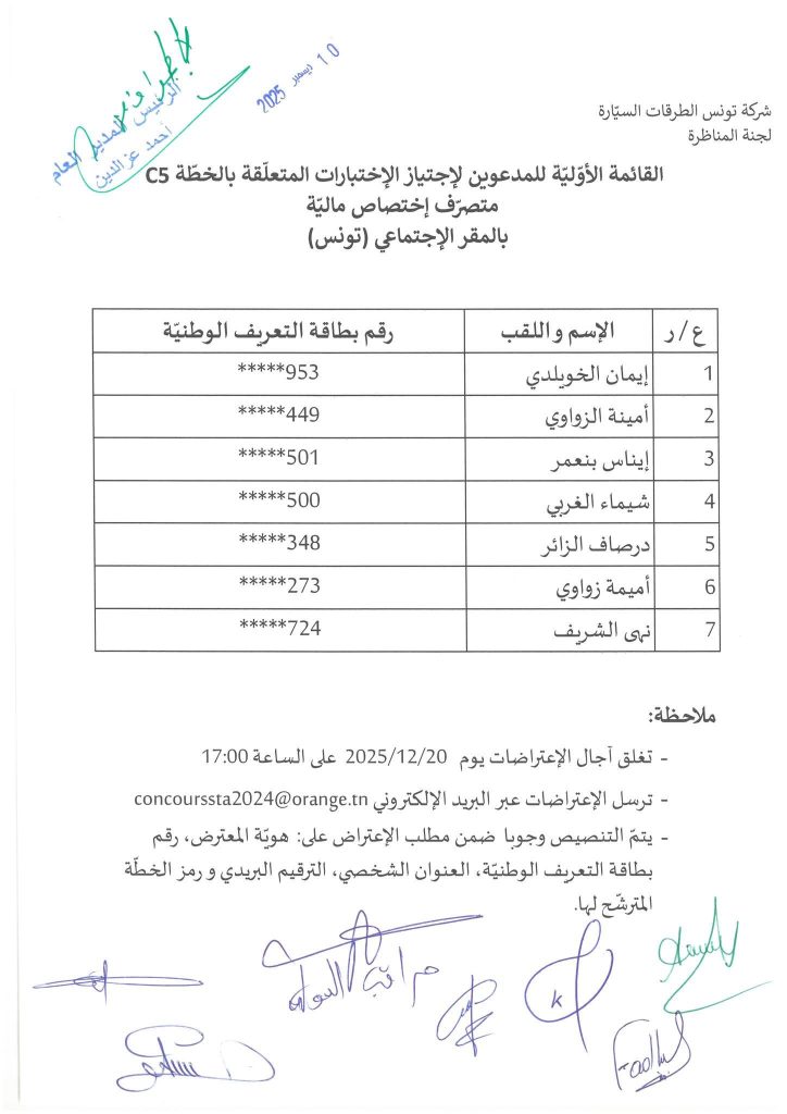 شركة تونس للطرقات السيارة concours tunisie إستمارة الترشح