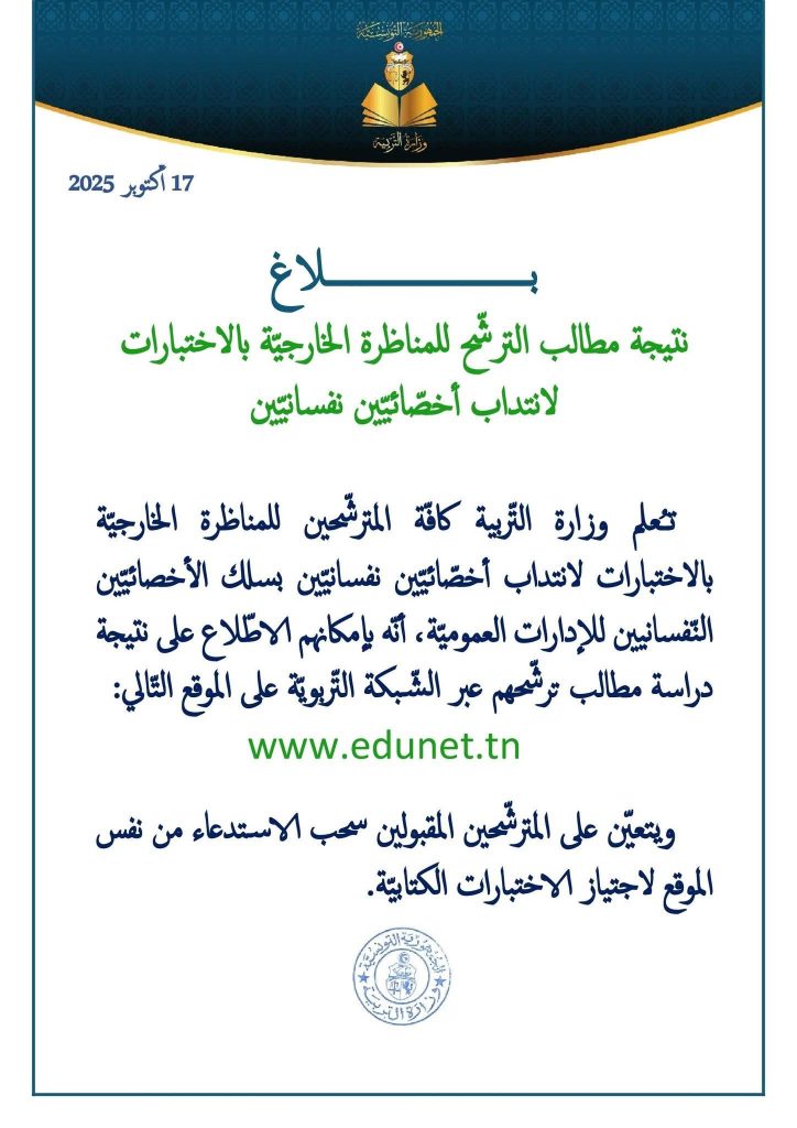 Home/concour tunisie 2025/بلاغ خاص بمناظرة وزارة التربية للإنتداب في عديد الاختصاصات concour tunisie 2025concours 2025concours en tunisieconcours en tunisie 2025concours fonction publiqueconcours tunisieconcours tunisie 2025resultat concourstous les concours de la tunisiewww.concourstunisie.com بلاغ خاص بمناظرة وزارة التربية للإنتداب في عديد الاختصاصات 18 août 2025 25 540 وزارة التربية concours tunisie Tagsconcours tunisie concours tunisie 2025 resultat concours tous les concours de la tunisie www.concourstunisie.com 18 août 2025 25 540