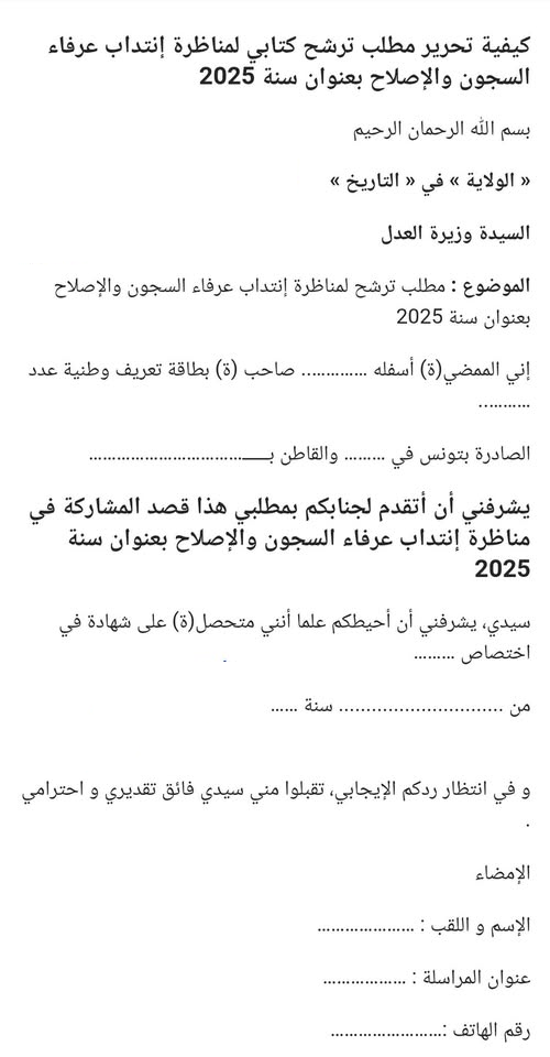 كيفية تحرير مطلب ترشح كتابي لمناظرة إنتداب عرفاء السجون والإصلاح بعنوان سنة 2025 concours tunisie https://magazineng.com/2025/11/05/concours-souj-3ref-2025/