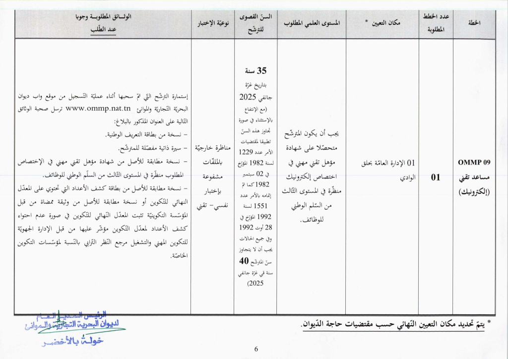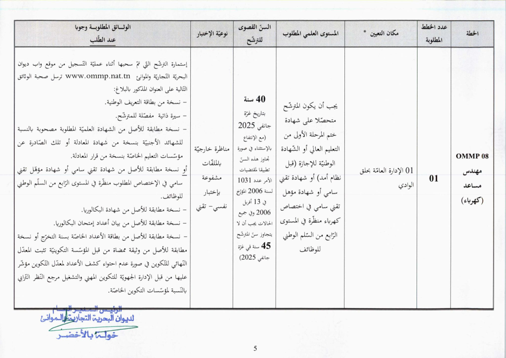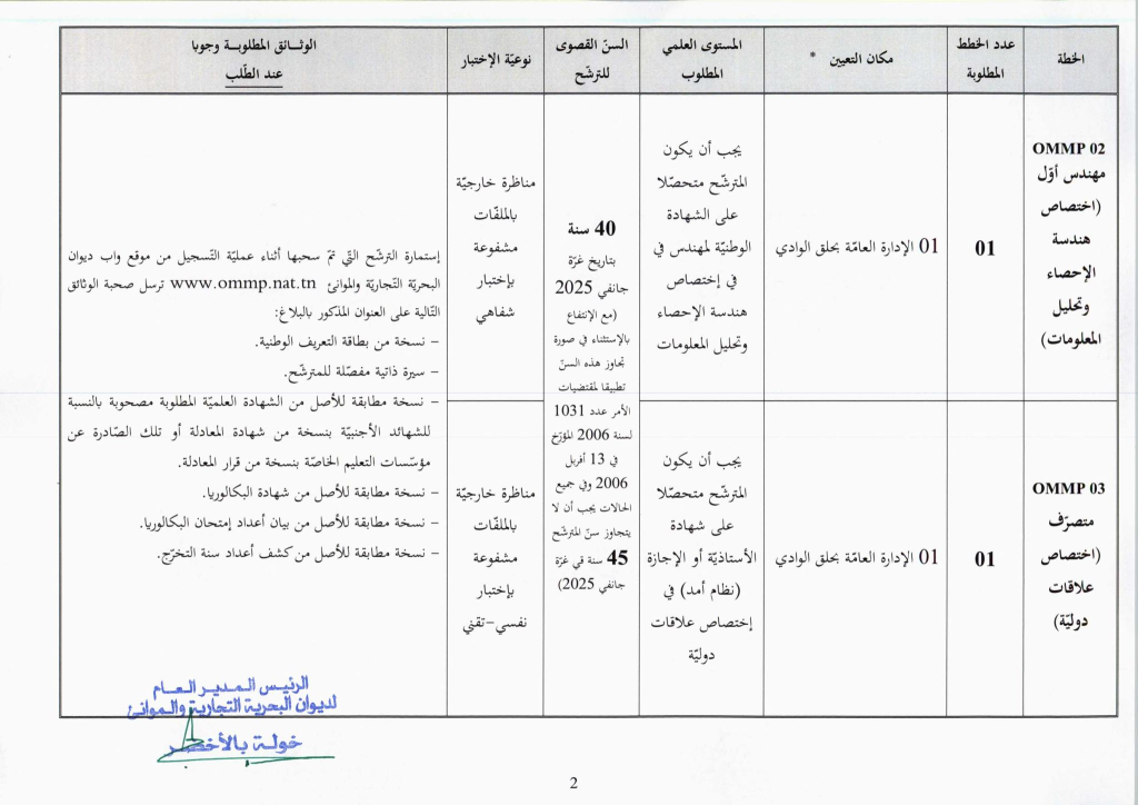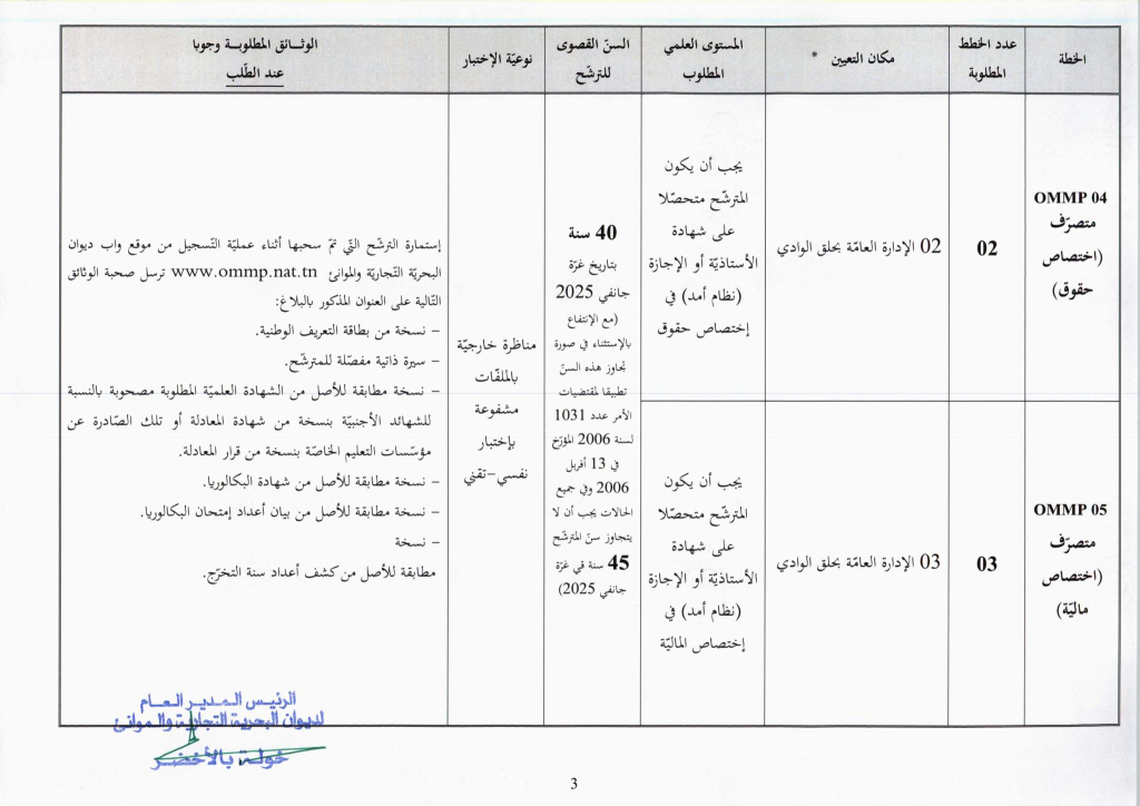 مناظرة ديوان البحرية التجارية والموانئ OMMP لإنتداب 24 عون و إطار : آخر أجل للتسجيل 14 جانفي 2026