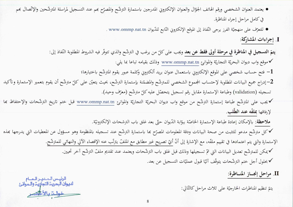 يتم التسجيل في المناظرة في مرحلة أولى عن بعد فقط عبر الموقع الإلكتروني التالي
