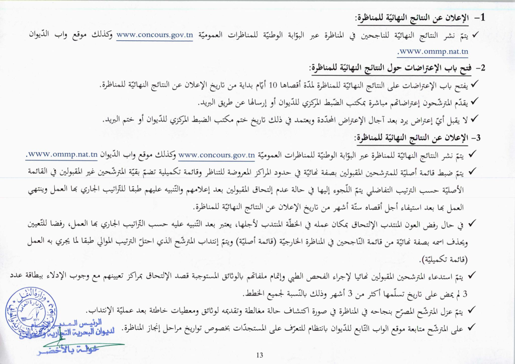 بلاغ فتح مناظرات خارجية بالملفات مشفوعة باختبارات نفسية تقنية أو شفاهية لإنتداب أعوان