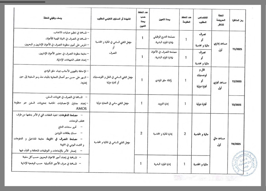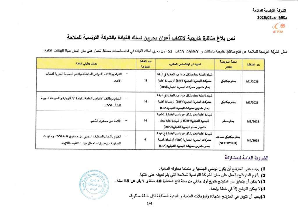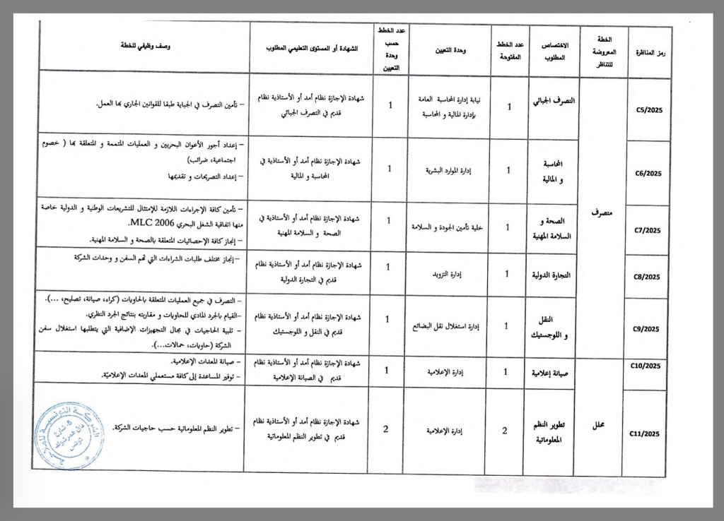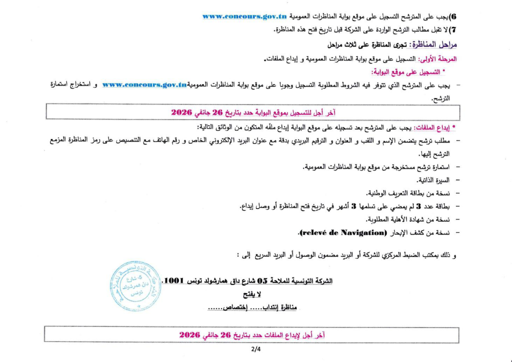 مناظرة الشركة التونسية للملاحة CTN لإنتداب 61 عون و إطار : آخر أجل 24 جانفي 2026