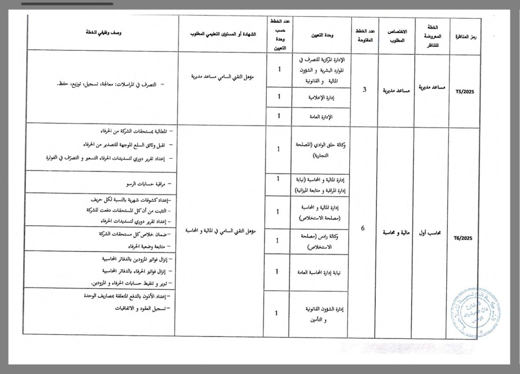 إعلان عن مناظرة خارجية لإنتداب إطارات و أعوان إداريين