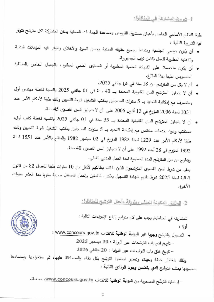 – تاريخ غلق باب الترشحات عبر البوابة : 20 جانفي 2026.