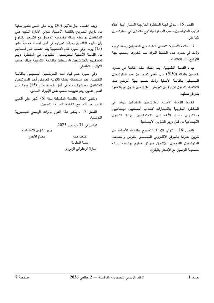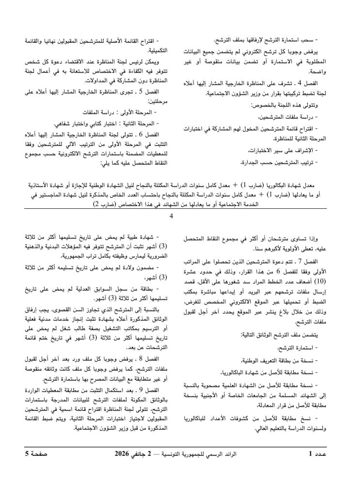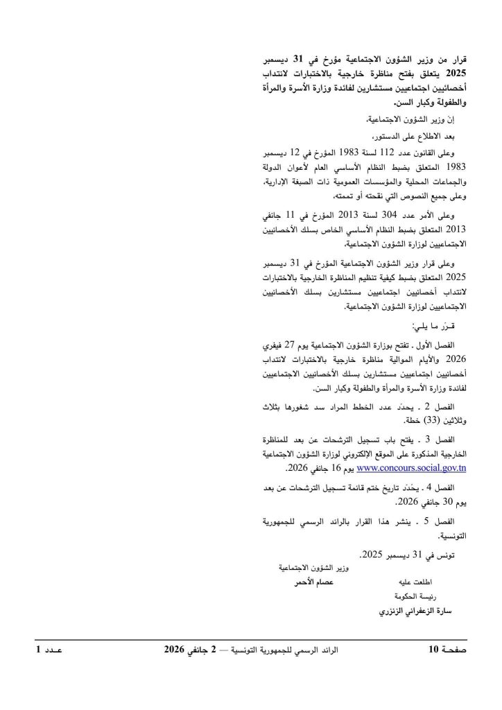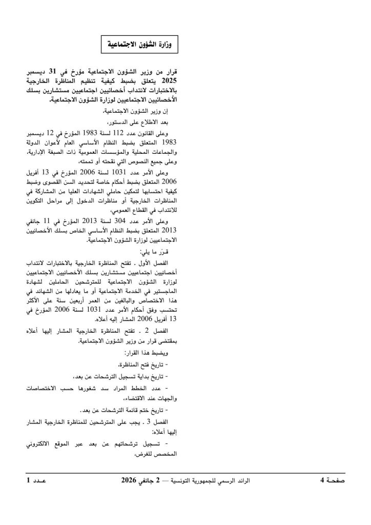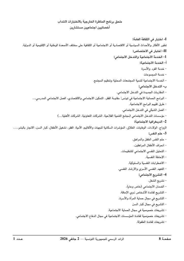 مناظرة وزارة الشؤون الاجتماعية لإنتداب أخصائيين إجتماعيين : آخر أجل 30 جانفي 2026