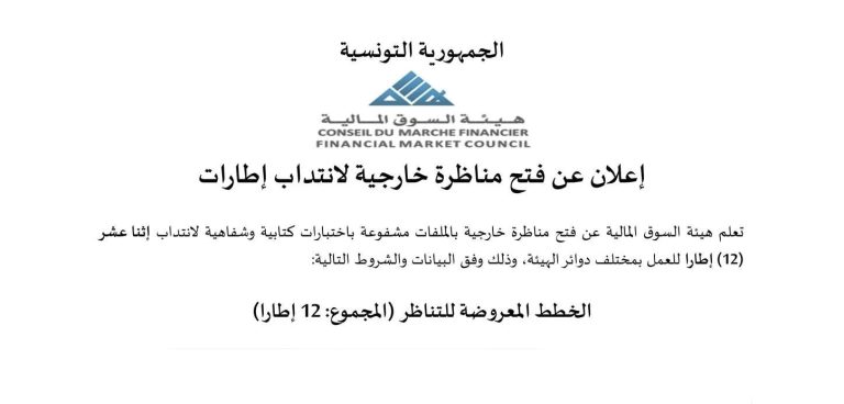 مناظرة هيئة السوق المالية لانتداب 12 إطارا موزعين على مختلف دوائرها : آخر أجل 31 جانفي 2026