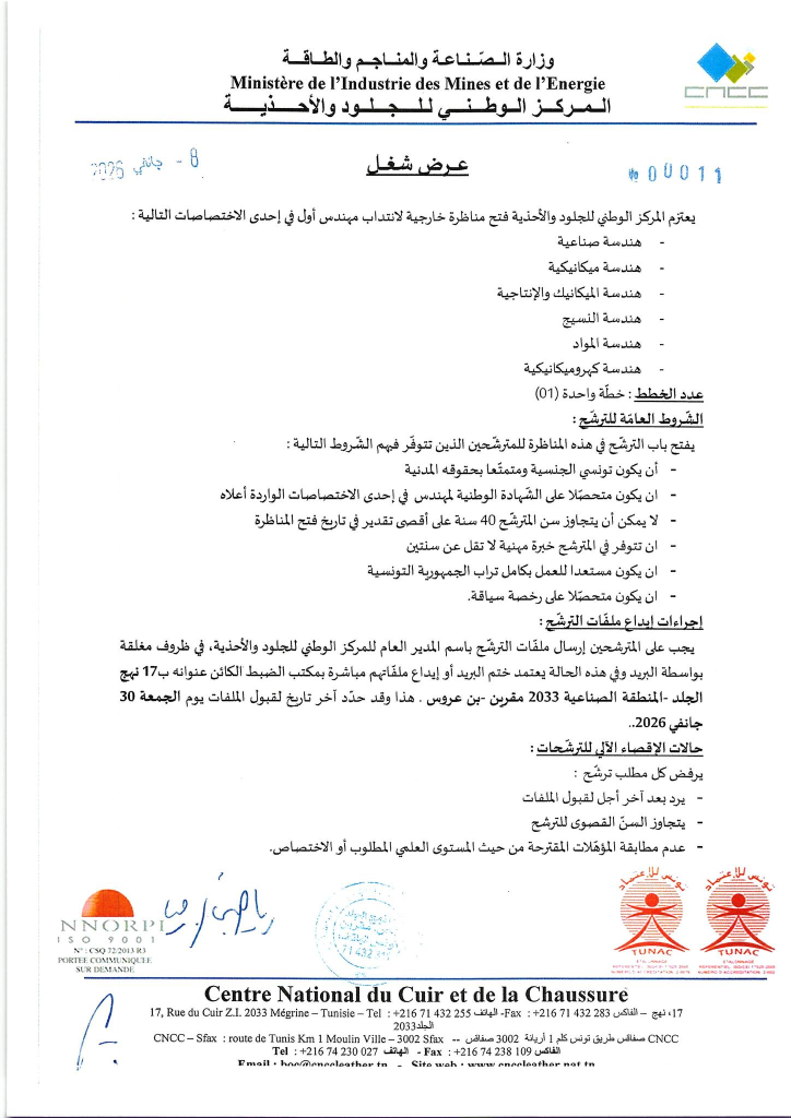 مناظرة وزارة الصناعة و المناجم و الطاقة لإنتداب عديد الإختصاصات : آخر أجل 30 جانفي 2026