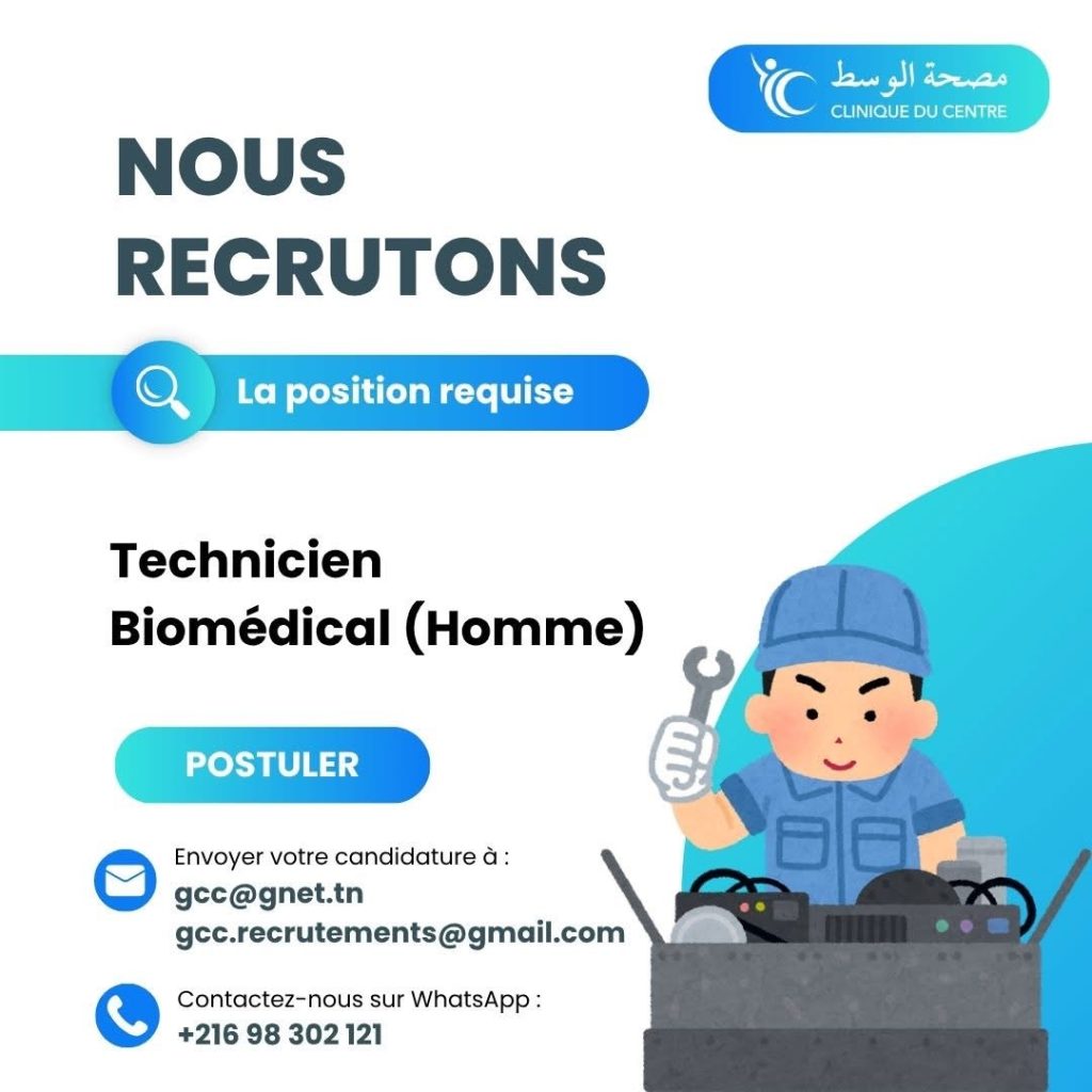 La Clinique du Centre à Ksar Hellal recrute un Technicien Biomédical pour renforcer son équipe technique.