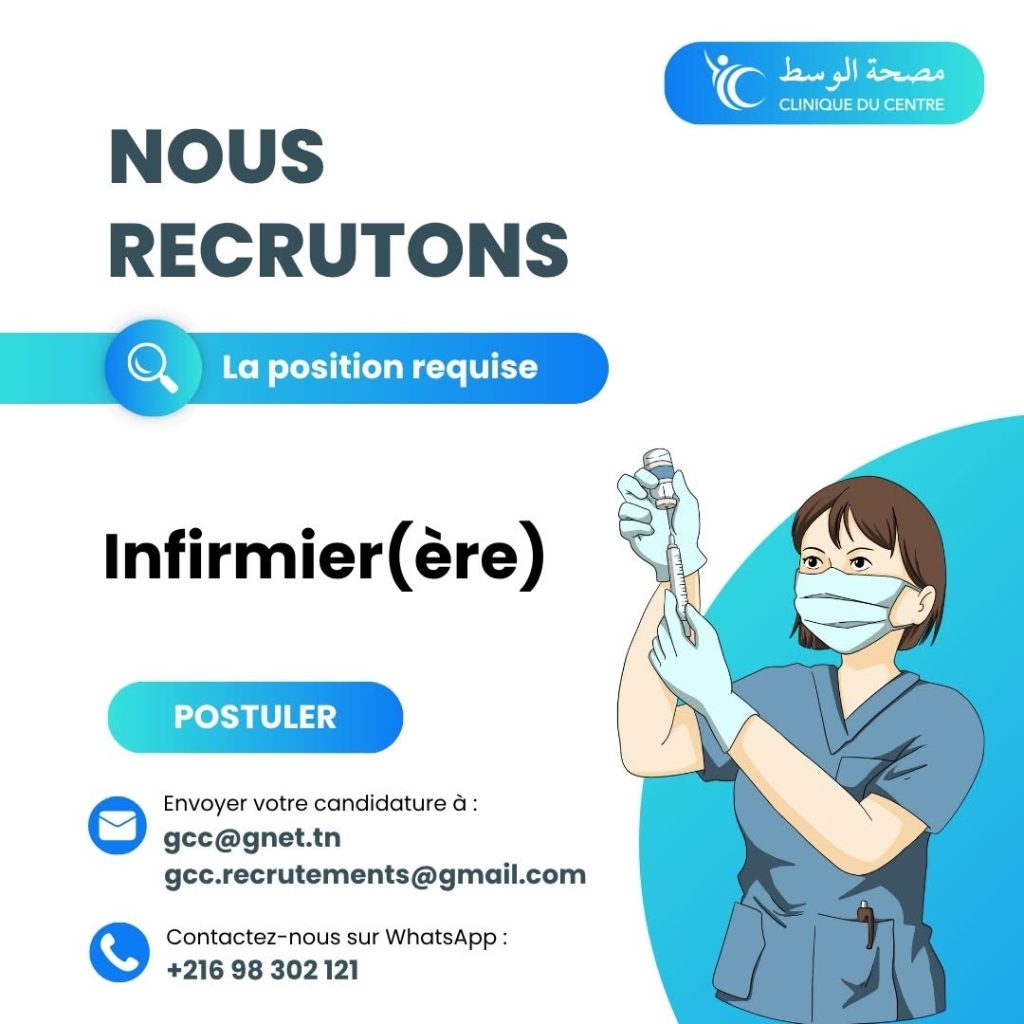 La Clinique du Centre à Ksar Hellal recrute un(e) infirmier(ère) pour renforcer son équipe soignante.